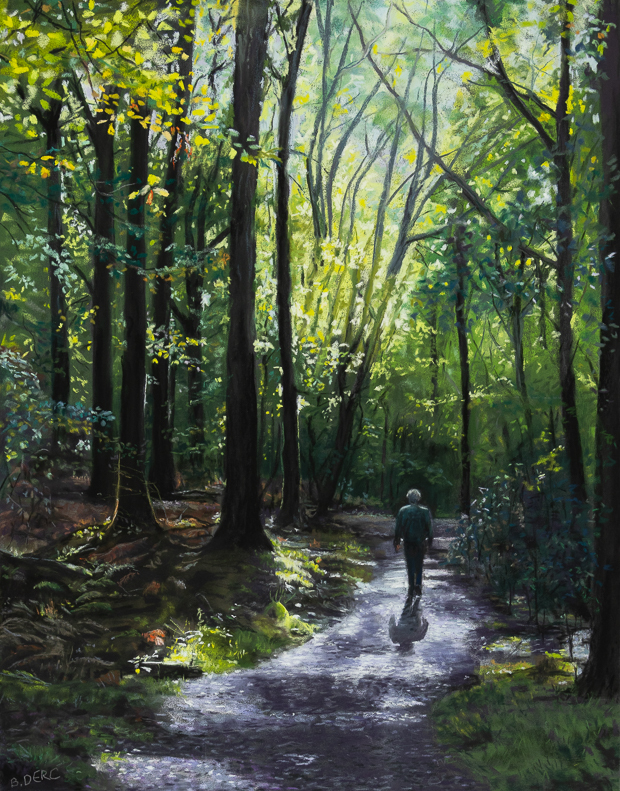 I have a painting of a woodland walk with dappled light and leaves glistening after the rain. My husband is seen from the back in the middle distance. I have had many positive comments on it, and people who know my husband say I have caught his gait precisely—but they would rather see themselves in the scene if they were going to own it. It would be no problem at all to brush him off and put in two new silhouetted people, but the thought of it makes me feel disloyal. Maybe the solution is to paint the scene again without a person there and to attach a note that says the picture can be personalized with the customer’s own silhouette(s).